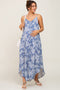 Pink Leaf Print Sleeveless Open Back Smocked Maternity Maxi Dress