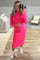 Pink Ribbed Mock Neck Long Sleeve Maternity Midi Dress