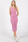 Details A sleeveless ribbed midi dress featuring a rounded neckline. Content + Care