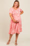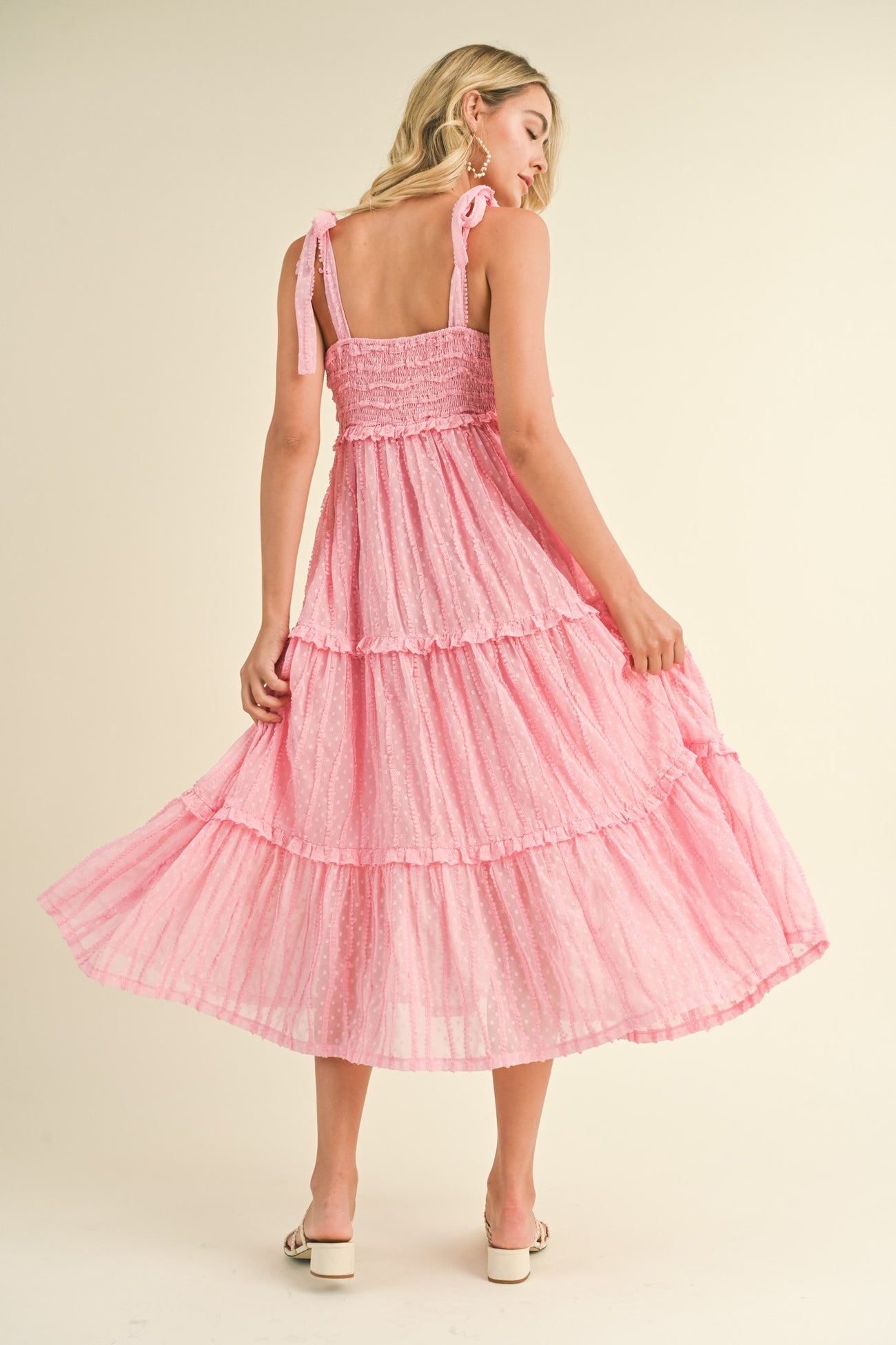 Pink Textured Tie Strap Tiered Midi Dress