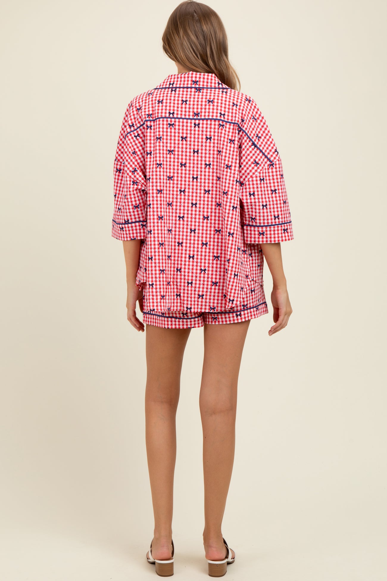Red Bow Print Gingham Pajama Short Maternity Set