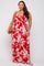 Red Floral Palm Print Wrap Plus Maxi Dress