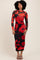 Red Floral Print Mesh Long Sleeve Maxi Dress
