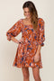 Red Floral Square Neck Smocked Short Sleeve Maternity Plus Midi Dress