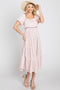 Details A solid mini dress with oversized flowy short sleeves, smocked bodice, ruffle hemline and cutout back with tie accent. Skirt is lined. Content + Care