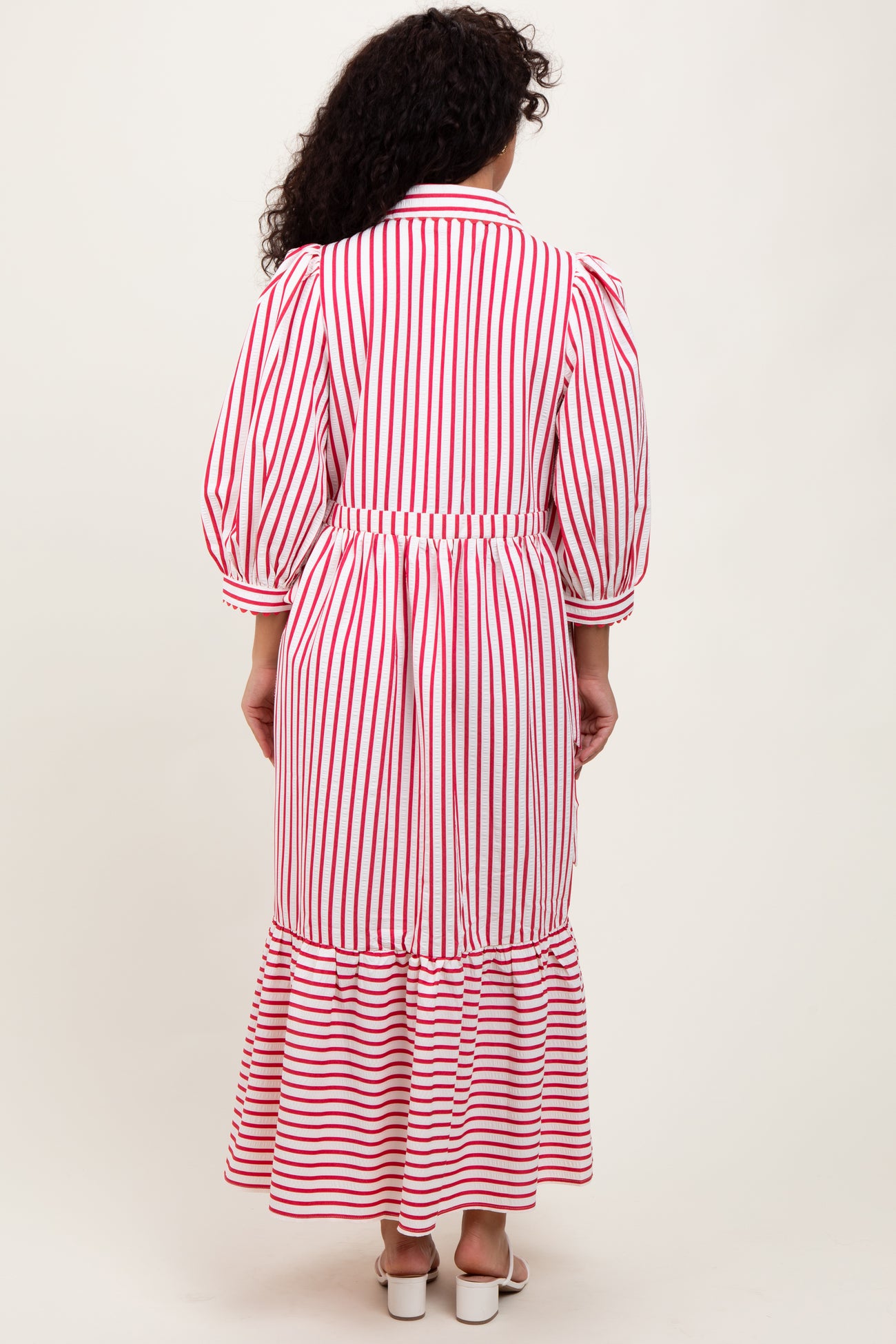 Red Striped Collar Maxi Dress