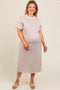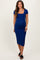 Royal Blue Ribbed Short Sleeve Side Slit Maternity Midi Dress