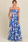 Royal Blue Tropical Print Cutout Smocked Jumpsuit