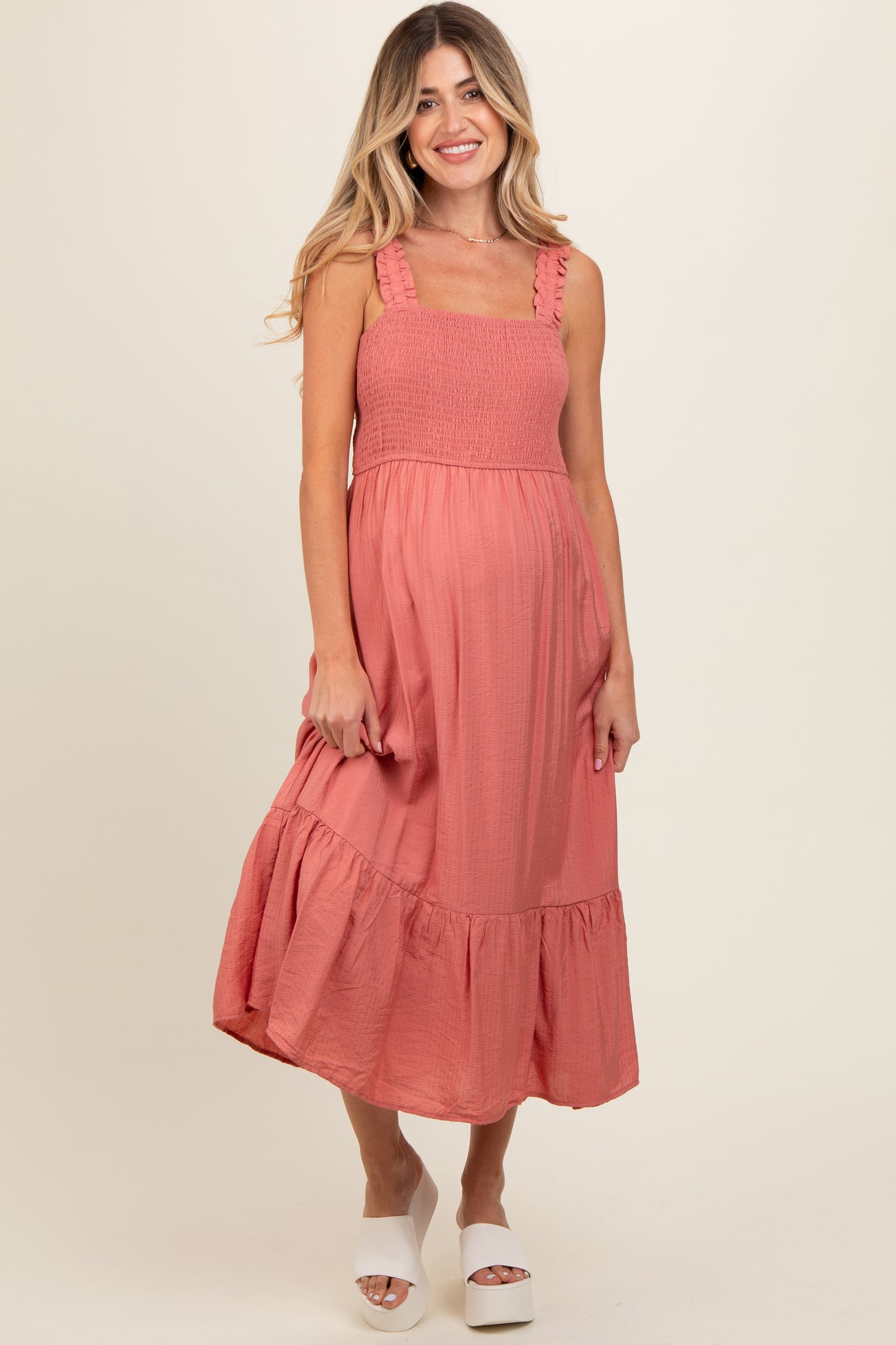 Rust Smocked Bodice Maternity Maxi Dress