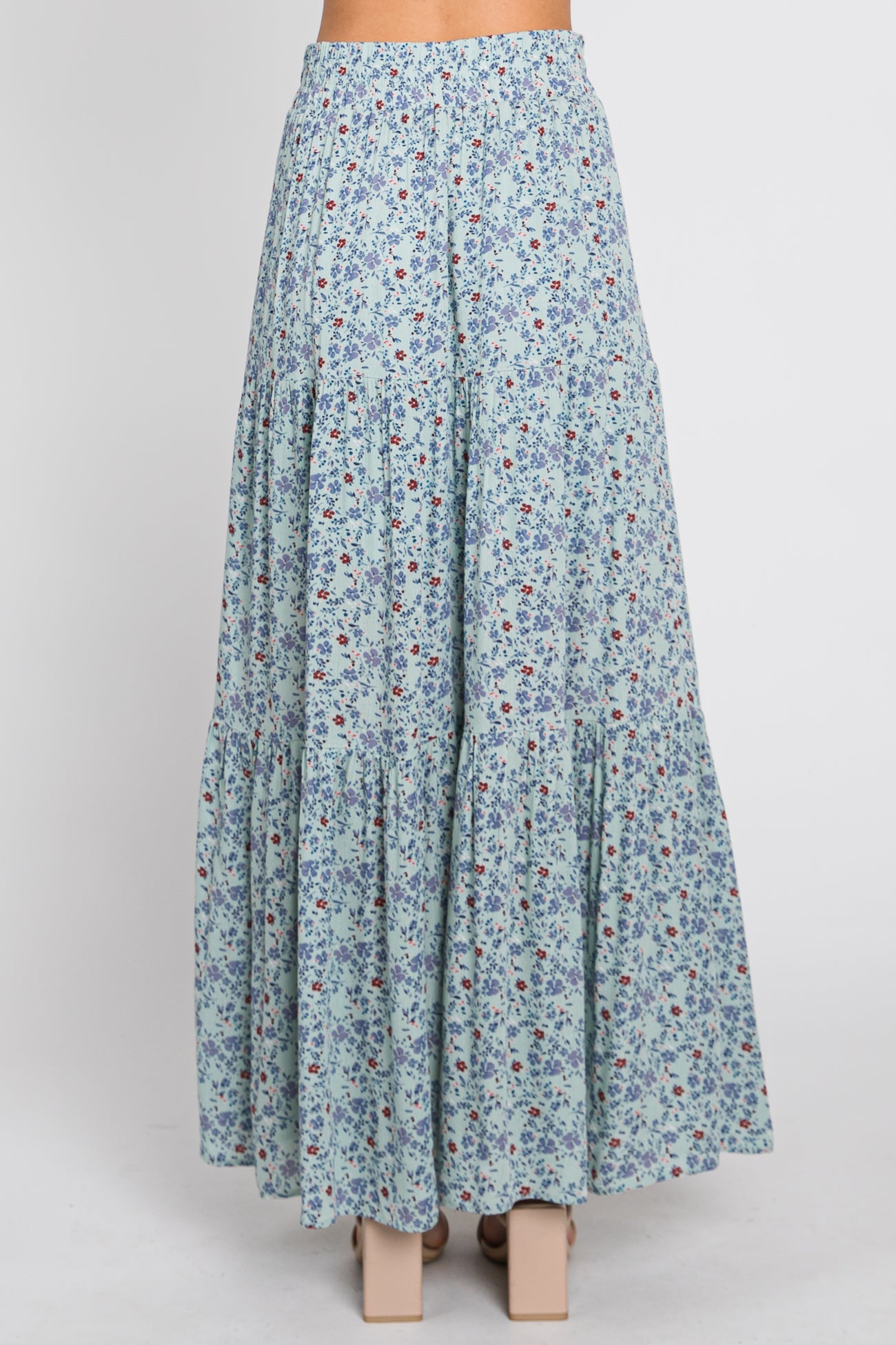 Details A floral maxi skirt featuring an elastic waistband and a tiered body. Skirt is partially lined. Content + Care