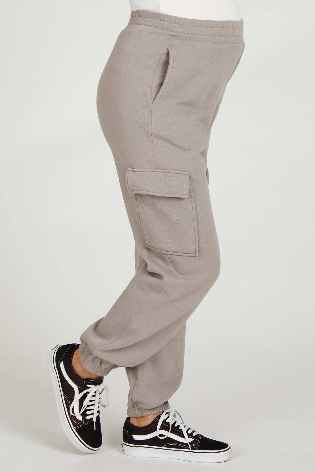 Taupe Fleece Cargo Maternity Sweatpants