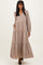 Taupe Plaid Tie Collar Tiered Maxi Dress