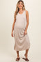 Taupe Ribbed Basic Short Sleeve Maternity Dress
