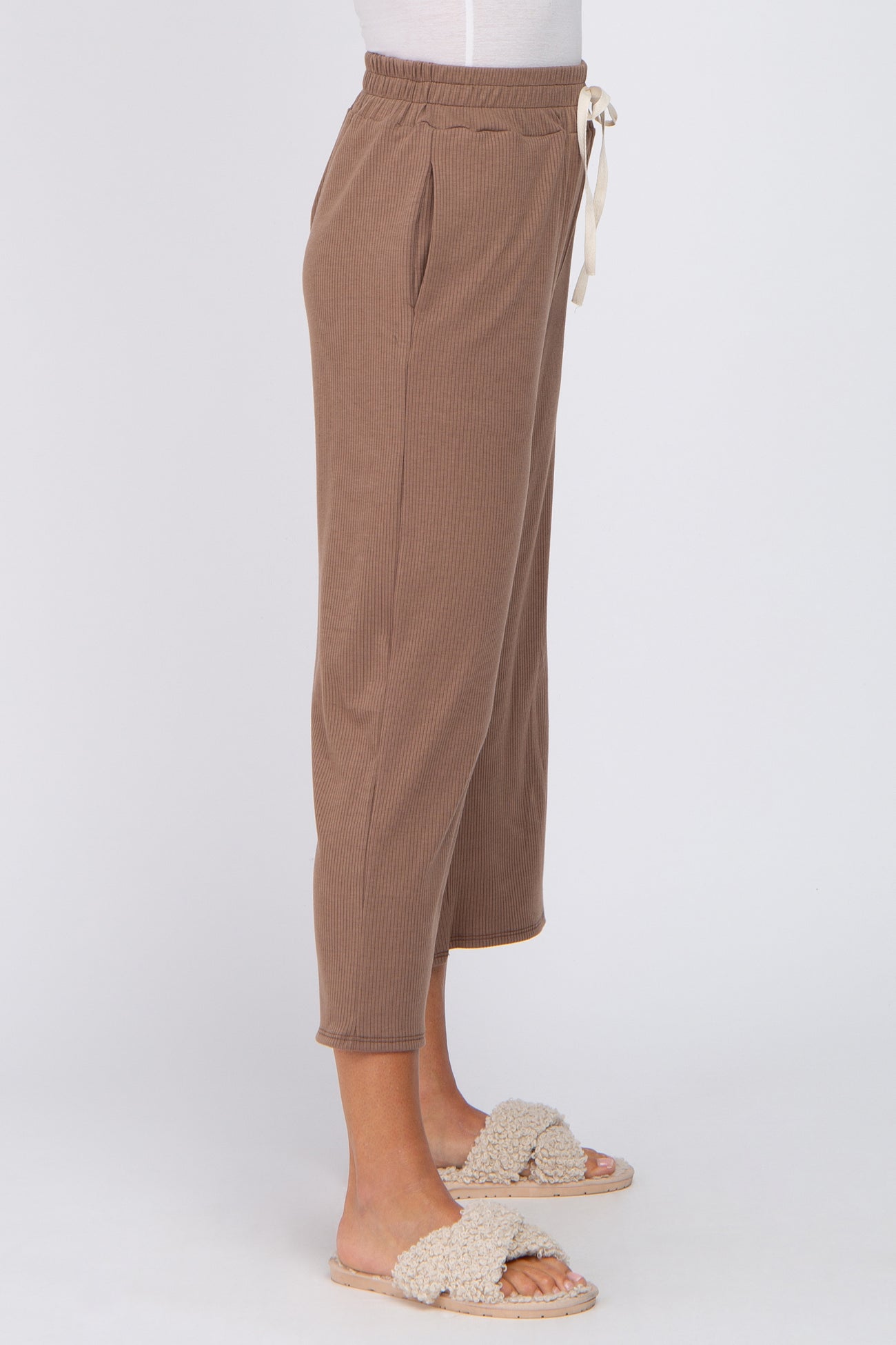Details Ribbed knit pants featuring side pockets, wide legs, an elastic waistband, and a front tie. Content + Care