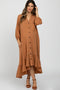 Taupe Ribbed Mock Neck Lettuce Trim Maternity Long Sleeve Top