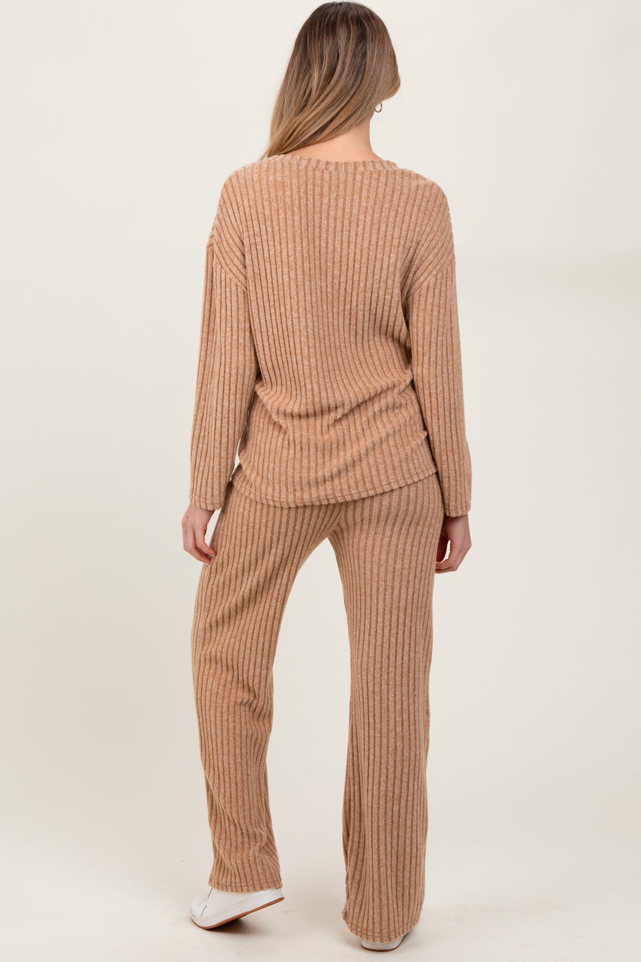 Taupe Ribbed Soft Knit Long Sleeve Maternity Pajama Set