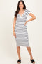 Taupe V Neck Mineral Wash Side Slit Midi Dress
