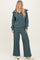 Teal Ribbed High Neck Half Zip Pullover Pant Set