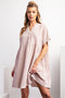 Details A solid knit maternity dress with a wrap v-neckline and short sleeves. Content + Care