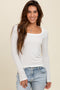 White Ribbed Scoop Neck Short Sleeve Top