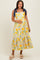 Yellow Floral Contrast Shoulder Tie Maternity Midi Dress