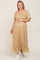 Details A floral print maternity plus size maxi dress featuring a squared neckline, a smocked bodice, short flounce sleeves, a gathered bottom tier, and a partially lined skirt. Content + Care