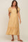 A solid hued maternity midi dress featuring short flutter sleeves, back smocking, side pockets, a ruffle hem and a square neckline.