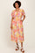 Yellow Mix Textured Floral Gathered V Neck Dress