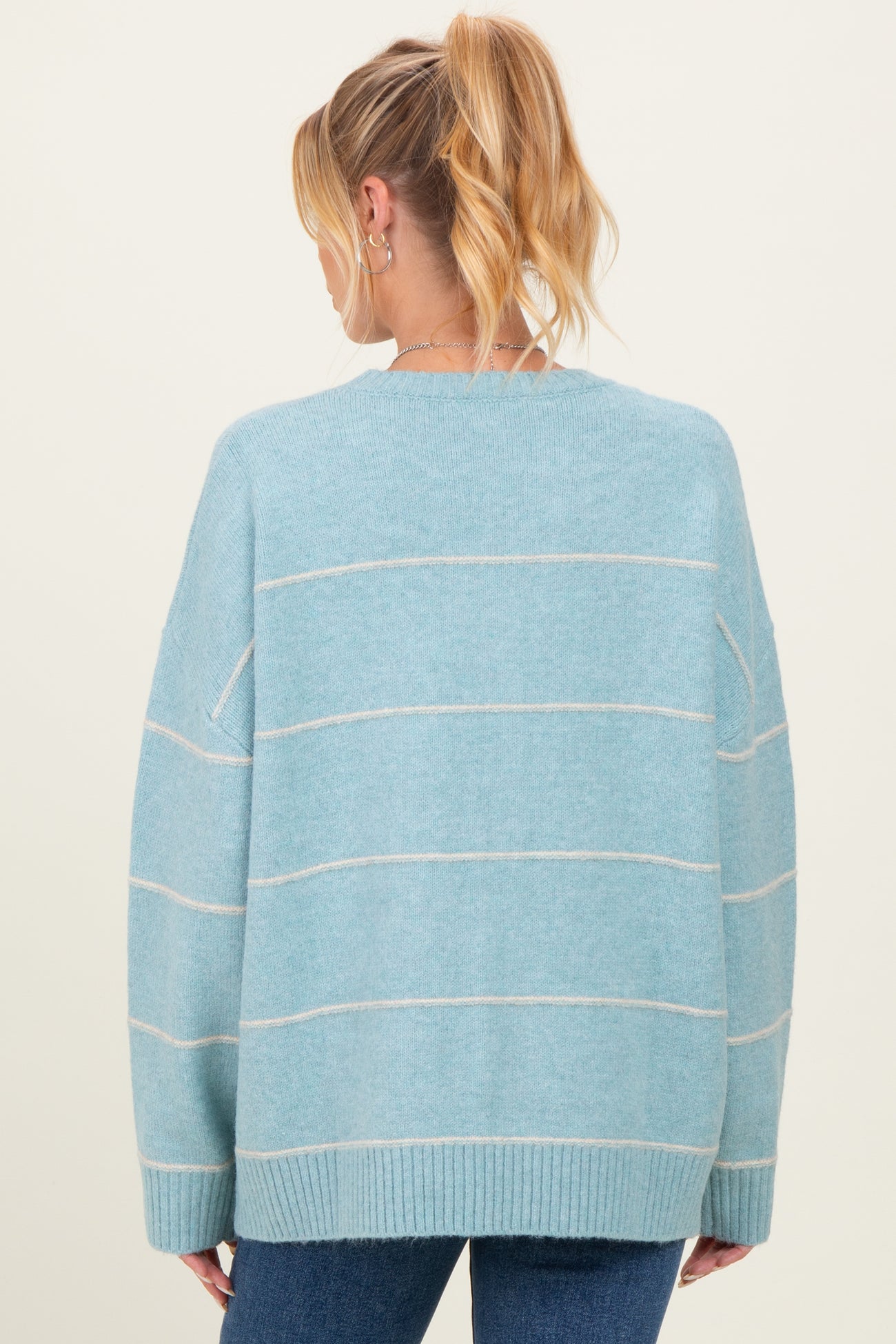 Light Blue Striped Drop Shoulder Maternity Sweater