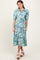 Aqua Paisley Collared Ruffle Hem Midi Dress