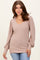 Beige Ribbed Knit V-Neck Button Cuff Top