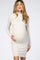 Beige Ribbed Mock Neck Fitted Maternity Dress