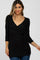 A brushed knit top featuring 3/4 sleeves and a self-tie wrap neckline.