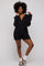 A solid knit romper with a collared neckline, half button up detail and two side pockets.