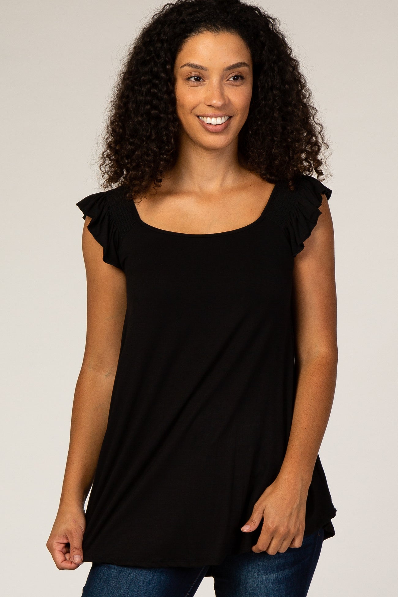 Black Flutter Sleeve Maternity Top