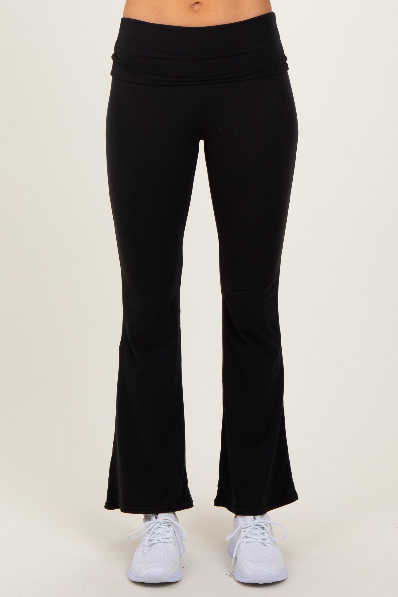 Elevate your activewear with these Black Fold Over Waistband Flared Pants. Designed for comfort and style, they feature a flattering fold-over waistband that offers a secure fit and adjustable coverage. The soft, stretchy fabric moves with you, making them perfect for yoga, workouts, or casual wear. The chic flared leg adds a trendy touch while elongating your silhouette. Pair them with your favorite sports bra or tank top for a polished, effortless look. Available in classic black, these versatile pants are a must-have addition to your wardrobe for both fitness and everyday style.