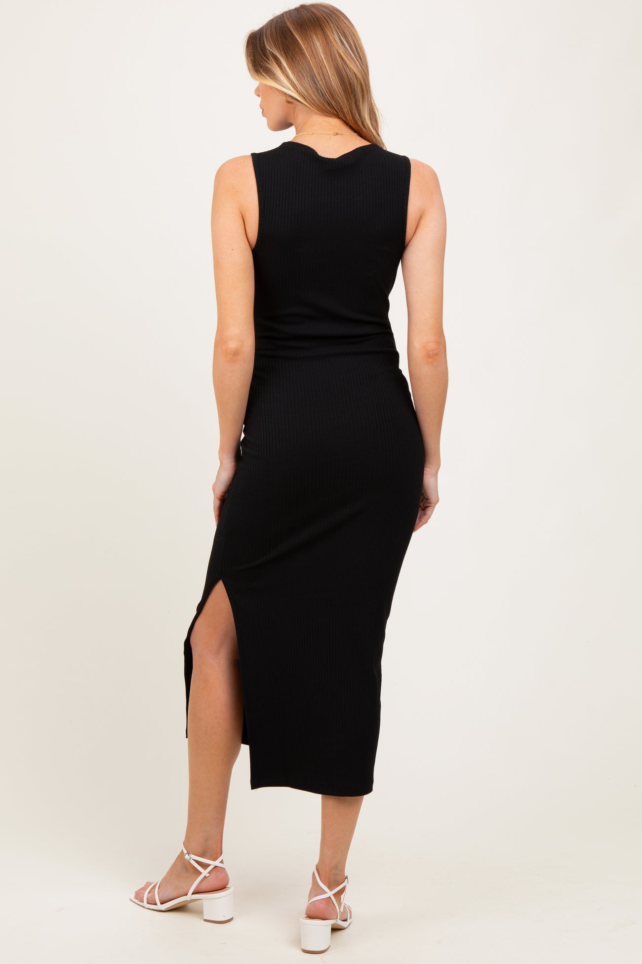 Black Mock Neck Side Slit Maternity Midi Dress