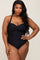 A plus one piece swimsuit featuring a ruched body, a padded bust and adjustable straps.