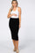 A solid ribbed knit maternity pencil skirt with an elastic waist and one side slit.