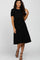 A solid ribbed short sleeve dress with scoop neckline and tiered body.