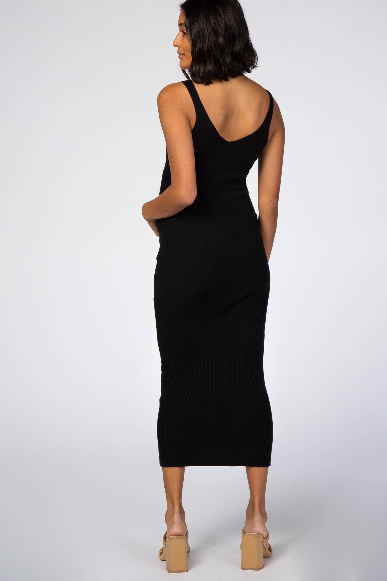 Black Sleeveless V-Neck Maternity Sweater Dress