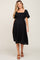 Black Smocked Puff Sleeve Maternity Midi Dress