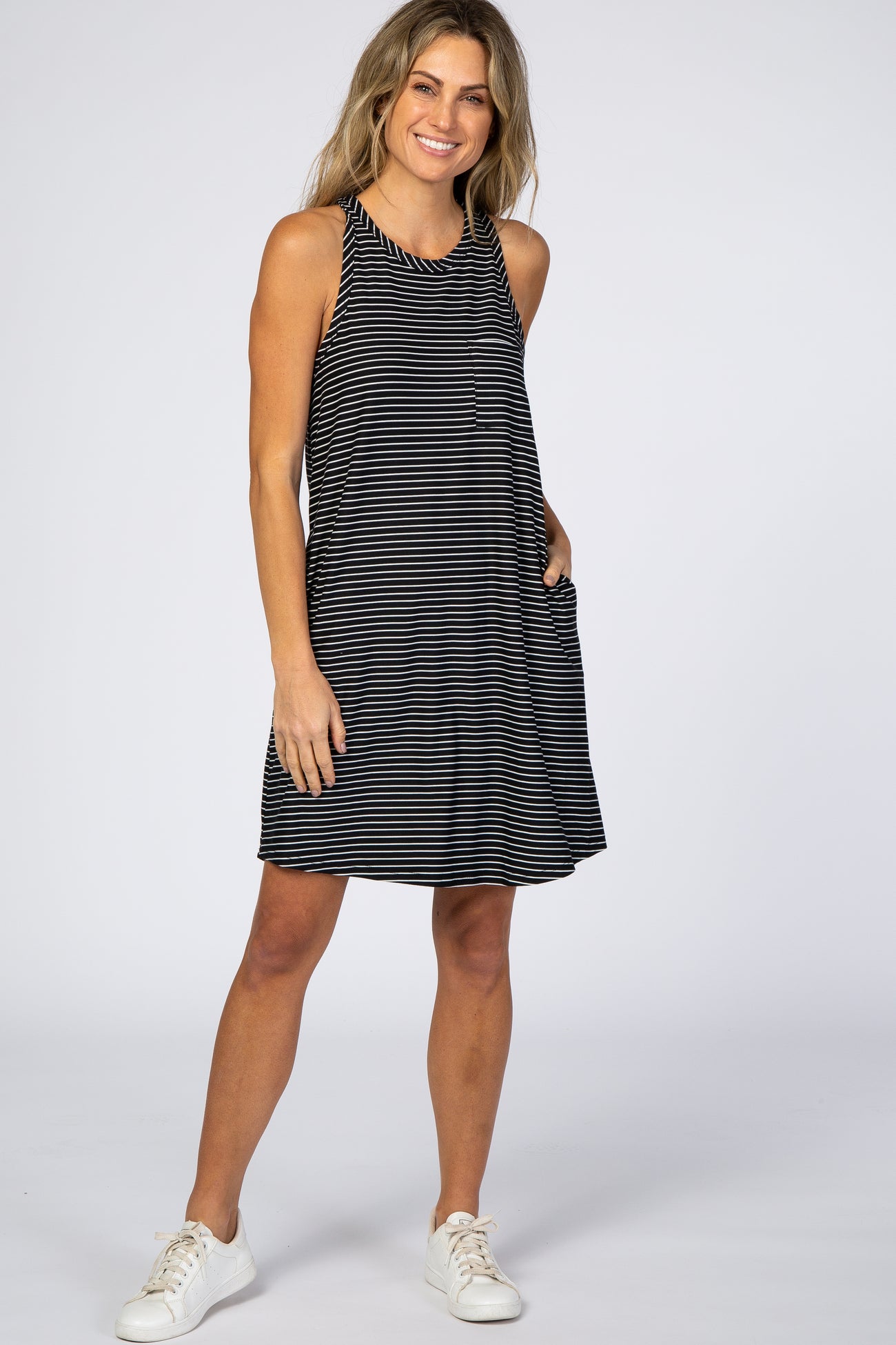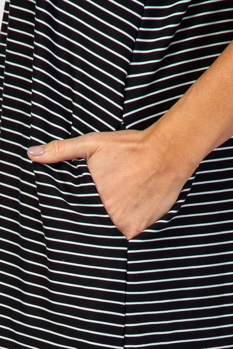 Black Striped Pocket Front Swing Dress
