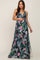 A tropical floral chiffon maternity maxi dress featuring a wrap front with an adjustable tie at the side, a v-neckline, adjustable cami straps and a criss cross back.