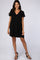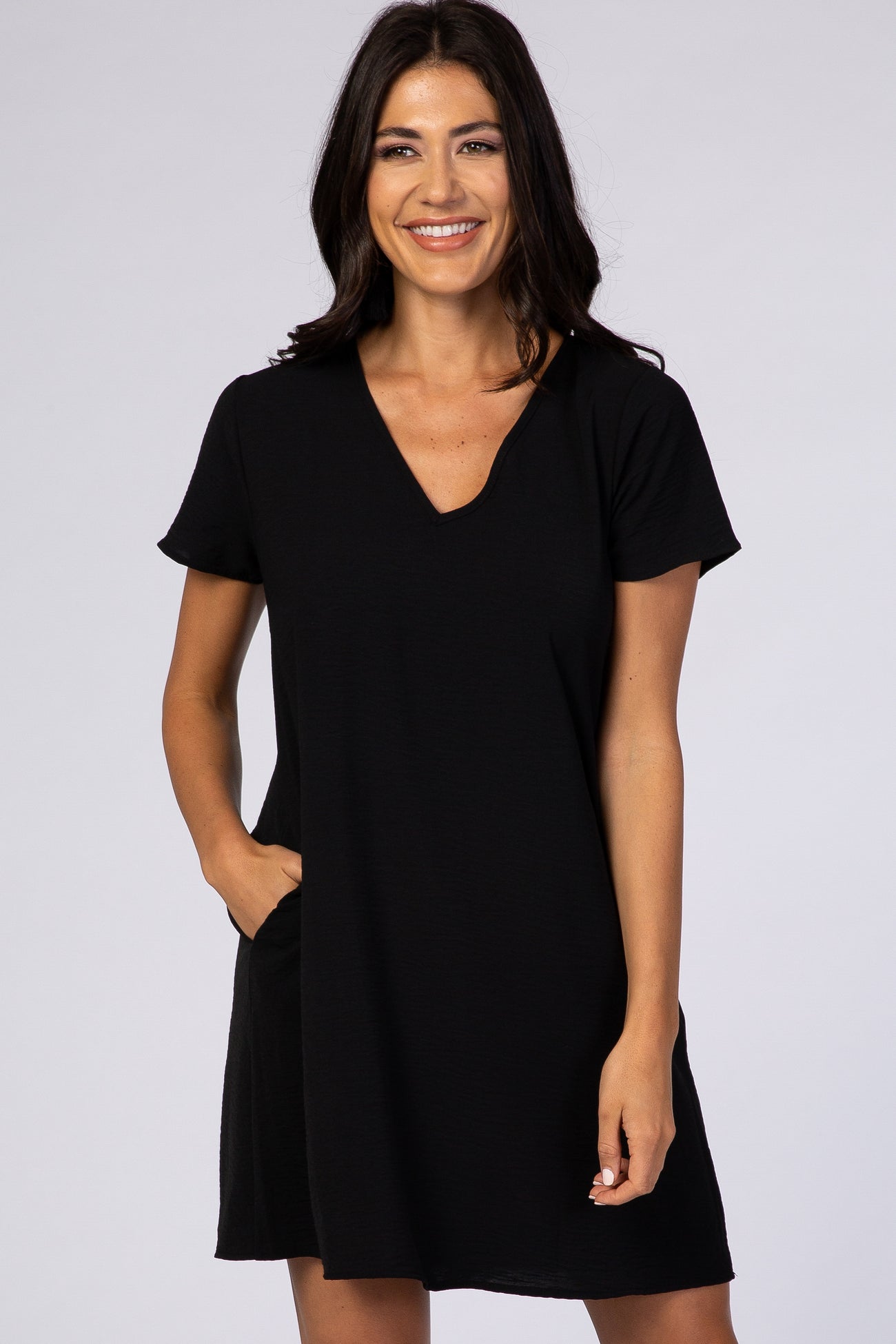 A solid hue dress, featuring short sleeves, a V-neck and side pockets.