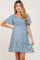A floral printed maternity dress with a smocked top, a squared neckline, short flounce sleeves, and a bottom gathered tier. Skirt is lined.