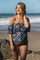 Blue Floral Ruffle Trim Ruched One-Piece Maternity Swimsuit