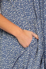 Blue Printed Chiffon Square Neck Ruffle Trim Maternity Dress