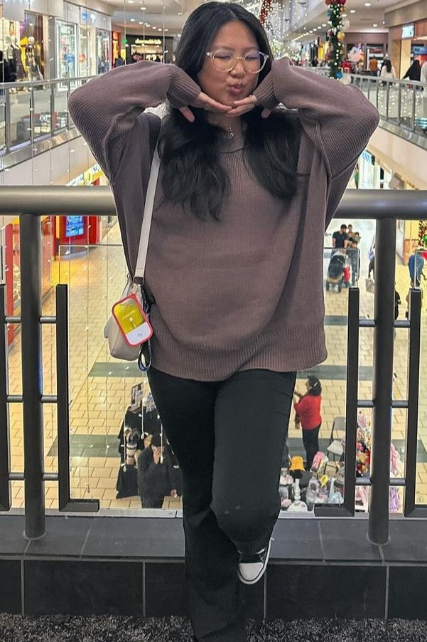 A sweater featuring a crew neckline, ribbed trim, exposed seam detailing, long sleeves and side slits.