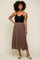 A midi skirt with an elastic back waist and front pleated accents at the waist. Skirt is partially lined.